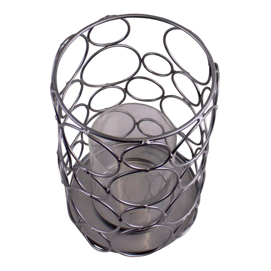 Large Silver Metal Abstract Design Candle Holder