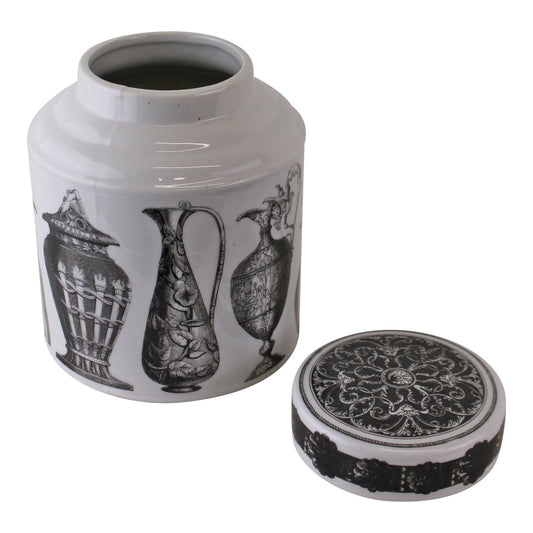 Large Round Grecian Style Porcelain Jar, Grecian Pottery