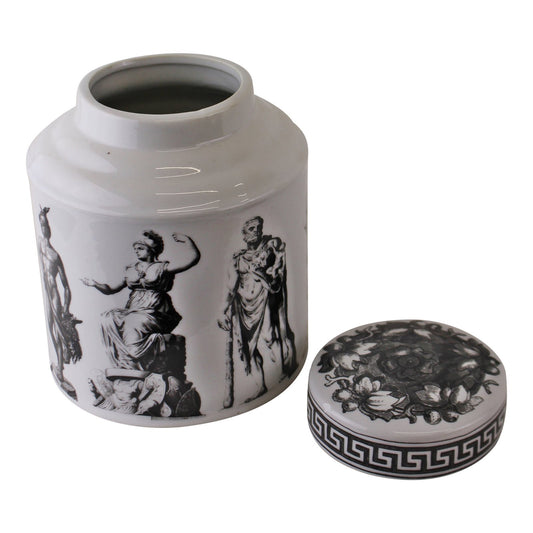 Large Round Grecian Style Porcelain Jar, Grecian Figures