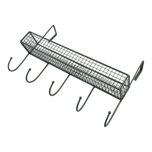 Mango Wood Wall Shelf With Storage Slots & 4 Hooks