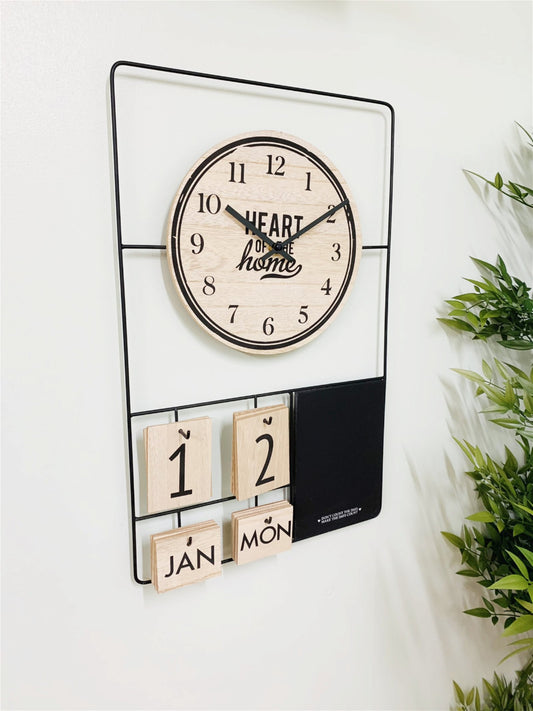 Metal & Wood Clock, Date & Memo Board 52x33cm