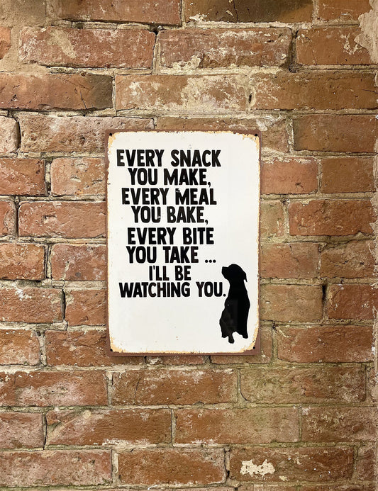 Metal Advertising Wall Sign - Every Snack Meal Make I'll Be Watching You Dog Lab