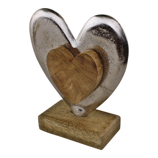 Metal and Wood Standing Heart Decoration