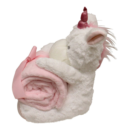 New Baby White Unicorn Teddy & Pink Throw