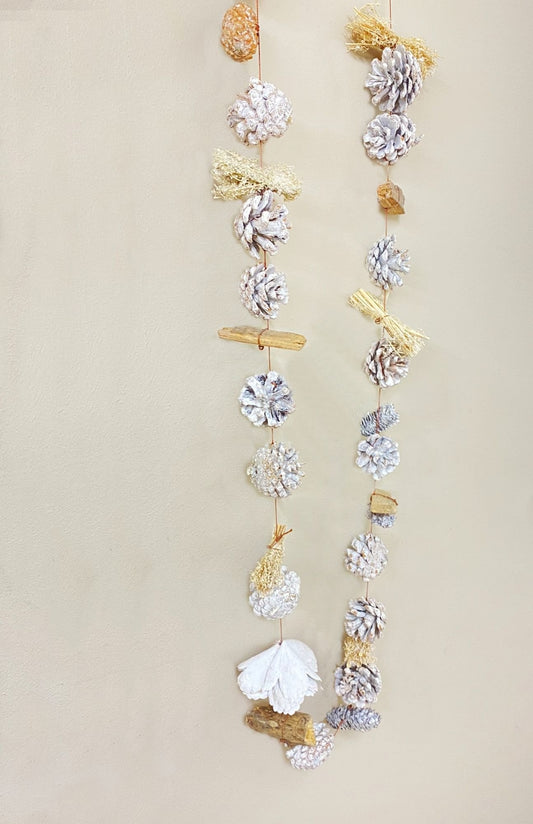 White Frosted Garland With Pinescones 1.5m
