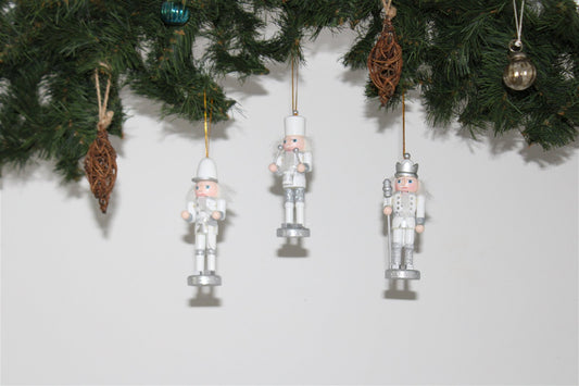 Trio of Silver Nutcracker Tree Decorations
