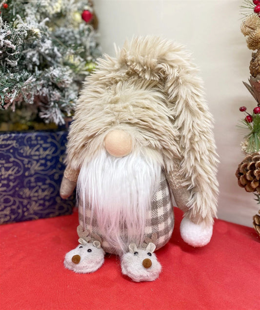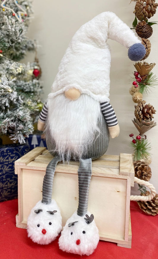 Grey & White Sitting Gonk With Slippers