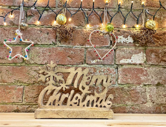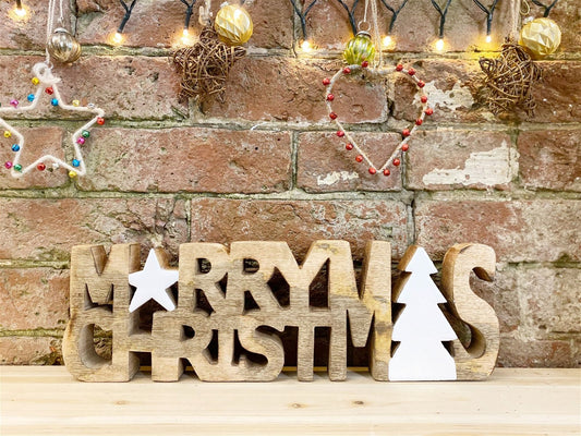Wooden Carved Merry Christmas Word Ornament