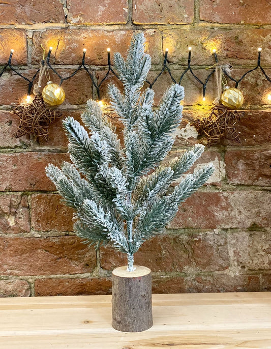 Small Frosted Christmas Tree In Log 43cm