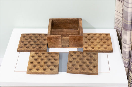 Set Of 4 Square Two Toned Wooden Coasters - Pink