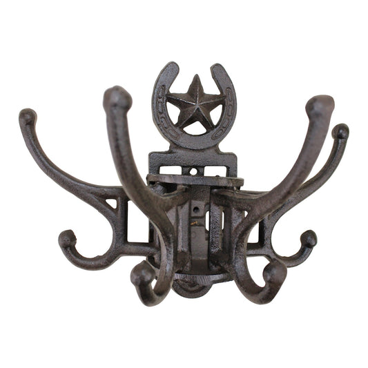 Cast Iron Wall Mounted Rotating Coat Hooks, Horseshoe, 8 Hooks
