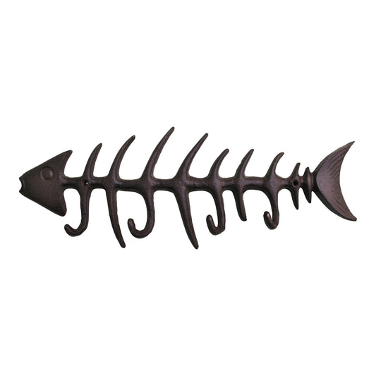 Rustic Cast Iron Wall Hooks, Fish Skeleton