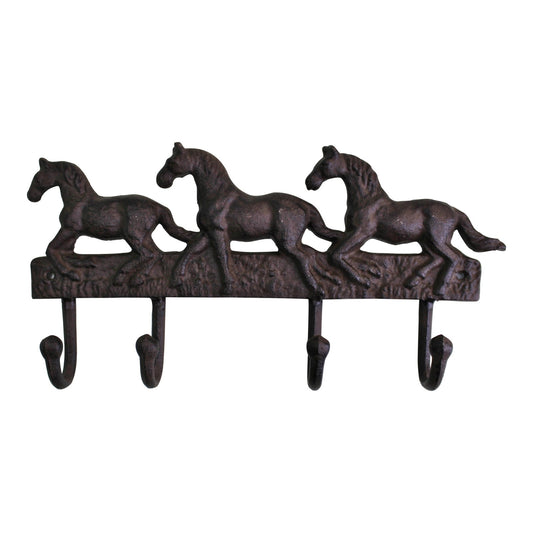 Rustic Cast Iron Wall Hooks, Three Horses