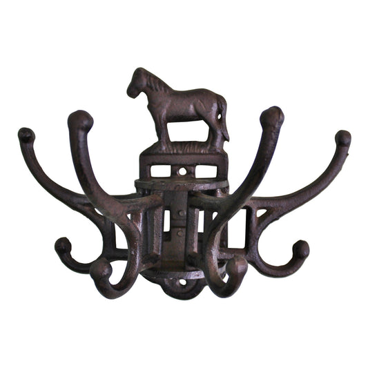 Cast Iron Wall Mounted Rotating Coat Hooks, Horse, 8 hooks