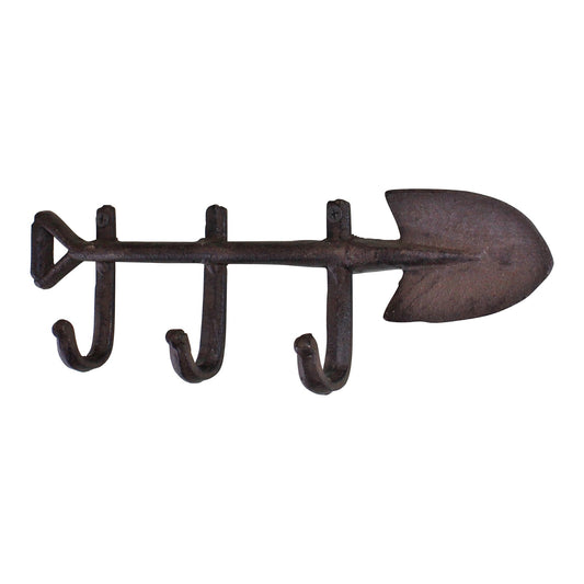 Rustic Cast Iron Wall Hooks, Garden Spade Design With 3 Hooks