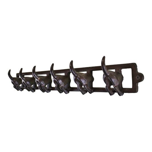 Rustic Cast Iron Wall Hooks, Dog Tail Design With 6 Hooks