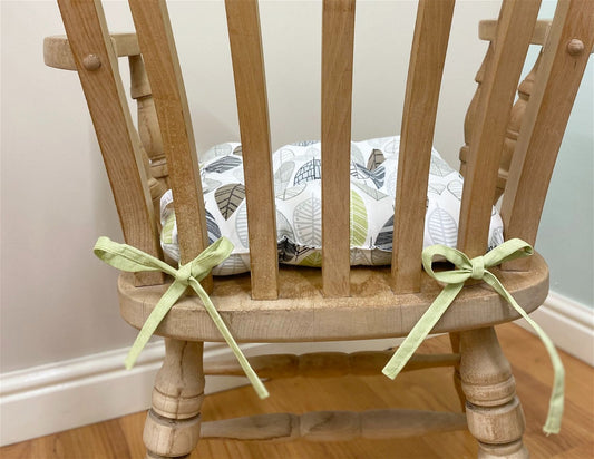 Fabric Seat Pad With Ties In Contemporary Green Leaf Print Design 36cm