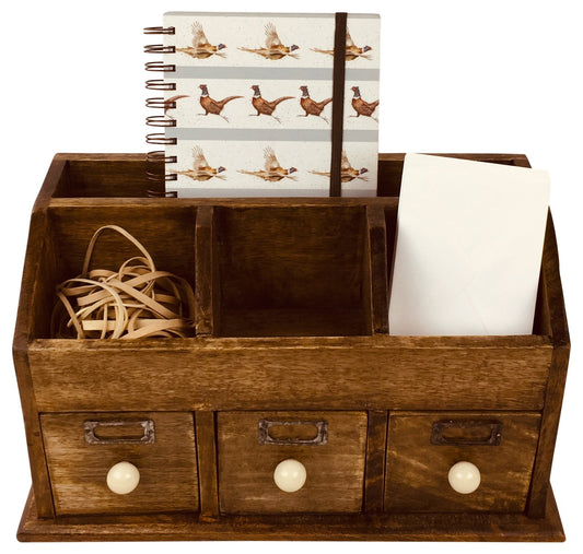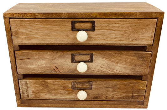 Solid Wood Three Drawer Desktop Organiser 28cm