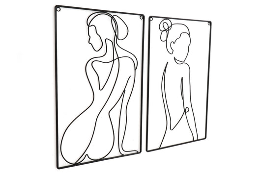 Set of 2 Black Metal Silhouette Wire Wall Decoration