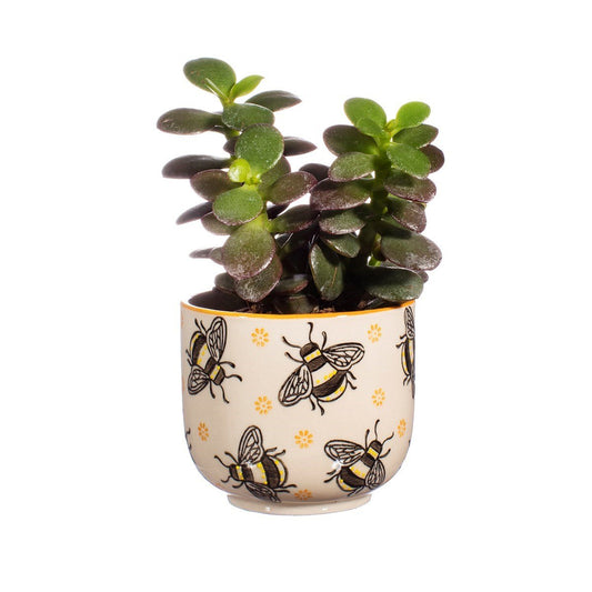 Ceramic Planter, Vintage Blue & White Daisies Design