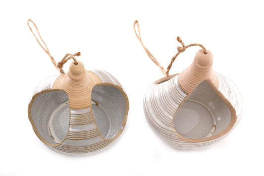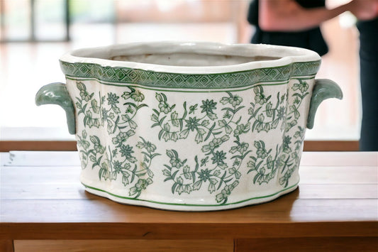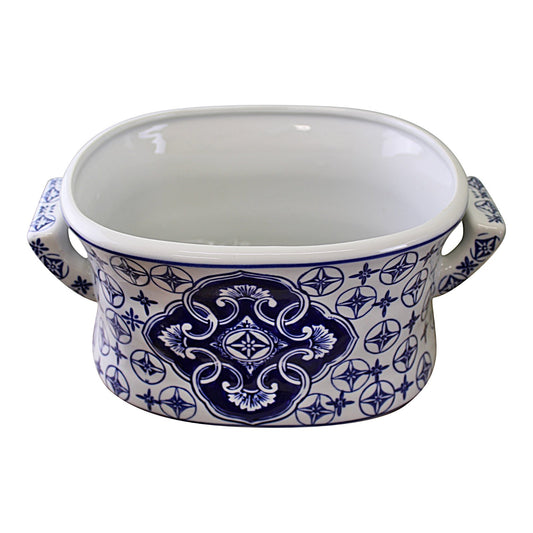 Set of 2 Ceramic Footbath Planters, Vintage Blue & White Circular Design