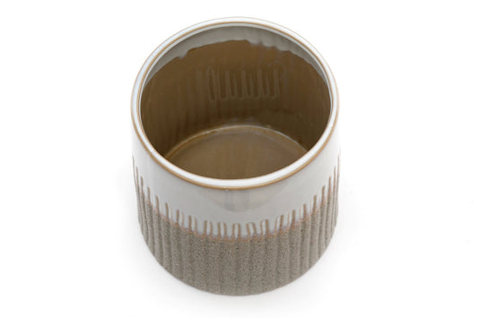 Ceramic Grey Ribbed Planter With Handles 12.5cm