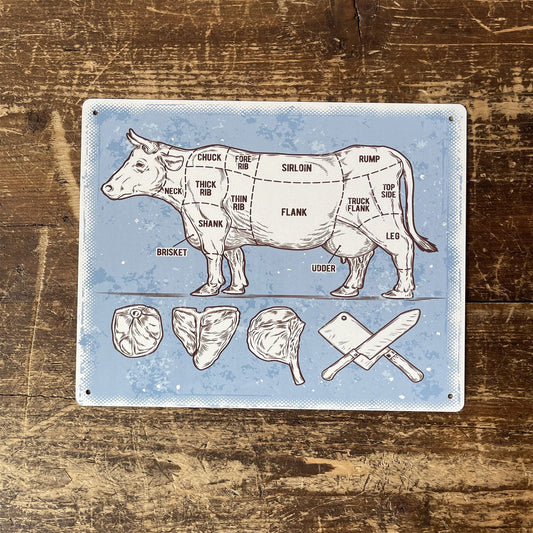 Vintage Metal Sign - Butchers Cuts of Beef Retro Sign