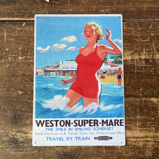 Vintage Metal Sign - British Railways Retro Advertising, Weston-Super-Mare, Somerset