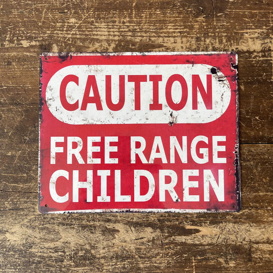 Vintage Metal Sign - Caution Free Range Children Wall Sign