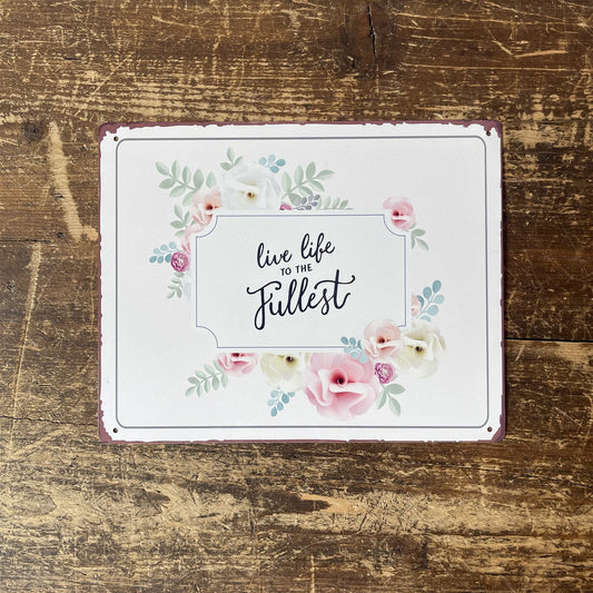 Vintage Metal Sign - Live Life To The Fullest Floral Wall Sign