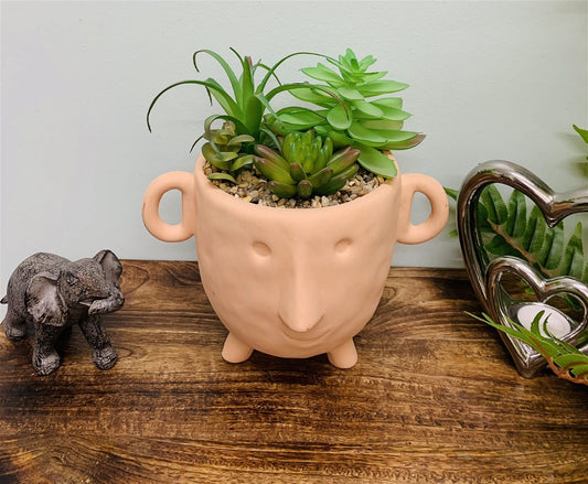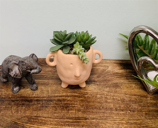 Face Terracotta Pot With Faux Cacti Small