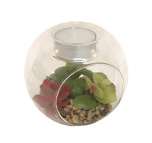 Succulent In Glass Terrarium with TeaLight Holder