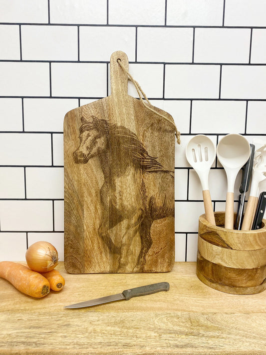 Circular Wooden Chopping Board With Carved Handle 49cm