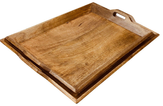 Set Of 2 Mango Wood Heart Detail Serving Trays