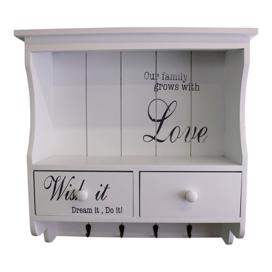 Wooden Wall Shelf with 4 Hooks 54 x 10 x 18 cm