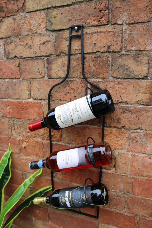 Wall Mounted Black Wire Wine Bottle & Glass Holder